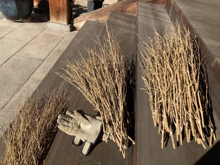 外を掃くということにおいて、結局竹ぼうきに勝るものはないので、いつも使うのですが、長く使うと先がちびてしまいます。