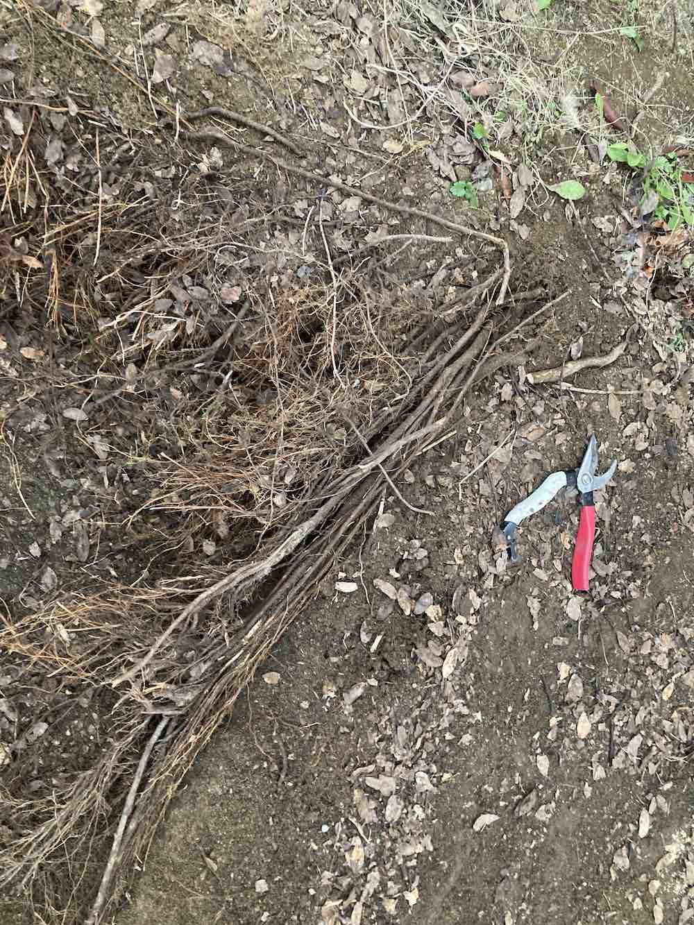 掘り返してみると、アカメとイチジクの根っこがすごい…。