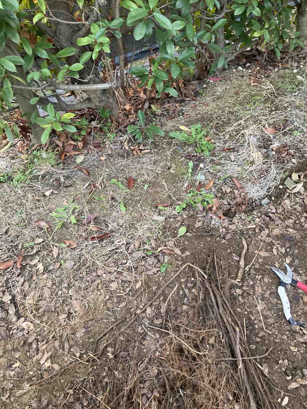 根っこがいくらでも出てくるので、邪魔になっているところの根っこは申し訳ないですが、切り落としながら掘り進めています。