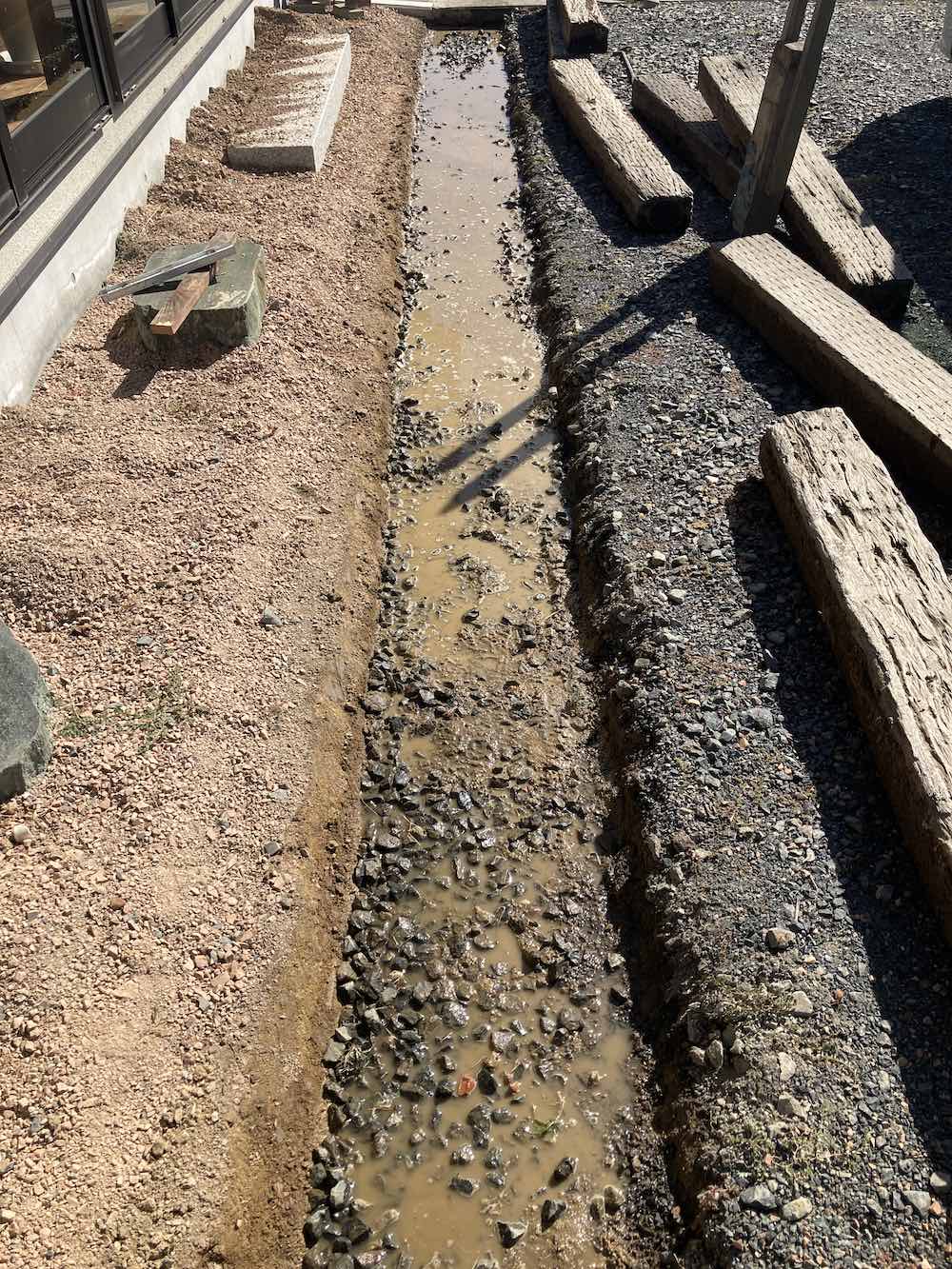 大雨になると枕木のところが水たまりになっていたので(その時の写真は撮っていませんでした)、やり直すことにしました。