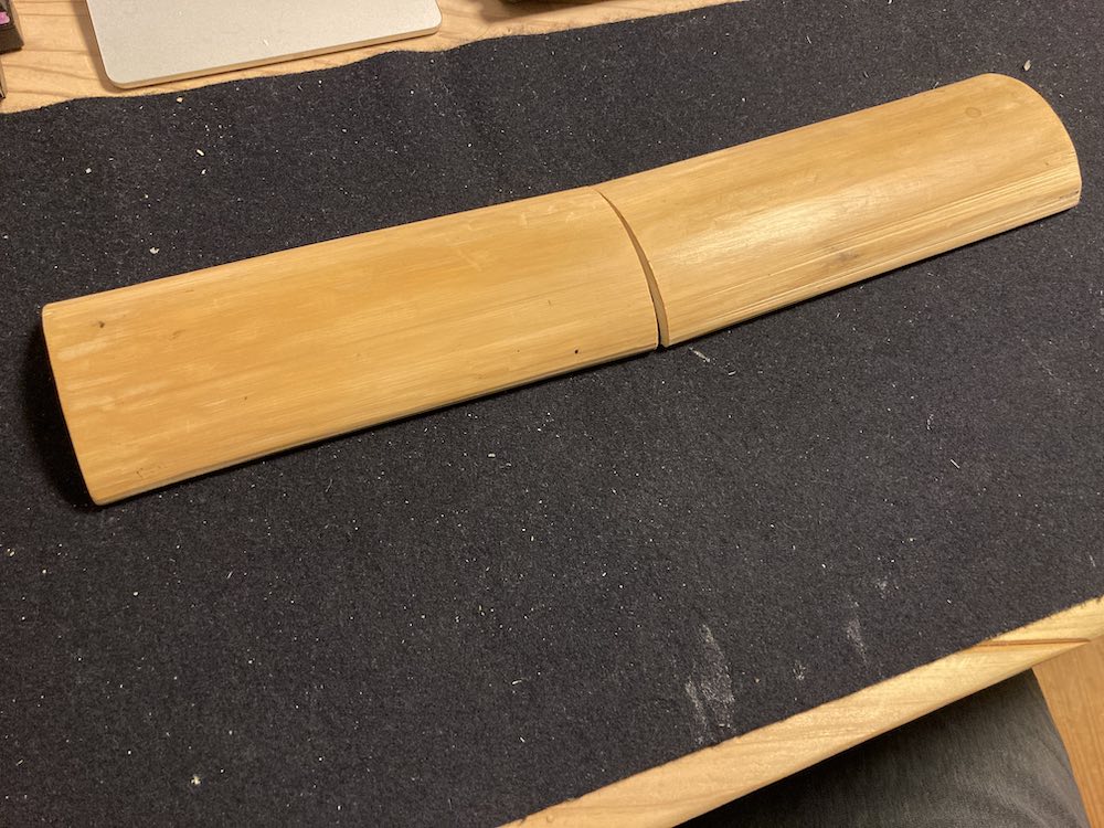 ということで数年前に自分で竹を割ったものをアームレストにしています。
