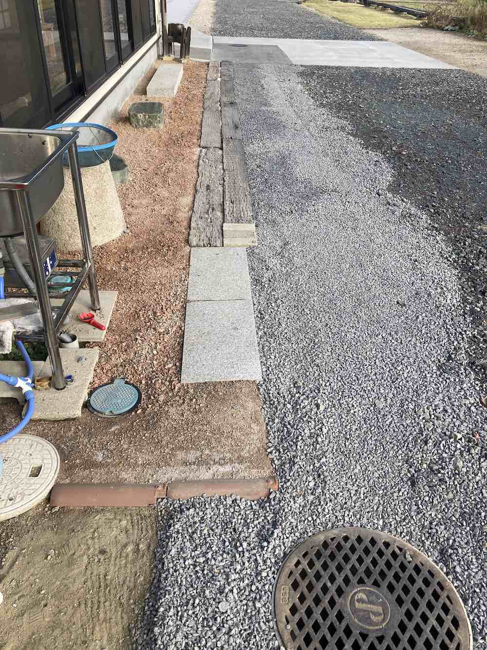 写真ではわかりにくいのですが、5センチほど高さを上げているので、雨が降っても通路がつかることはないと思います。